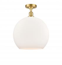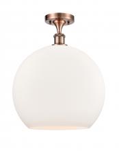 Athens - 1 Light - 14 inch - Antique Brass - Matte White Shade - Semi-Flush Mount