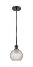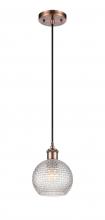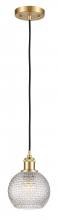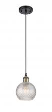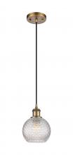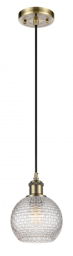 Athens - 1 Light - 6 inch - Antique Brass - Clear Basket Weave Shade - Cord hung - Mini Pendant