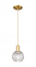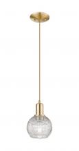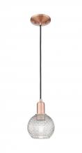 Athens - 1 Light - 6 inch - Antique Brass - Clear Basket Weave shade - Cord hung - Mini Pendant