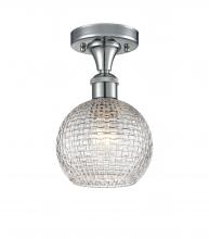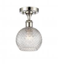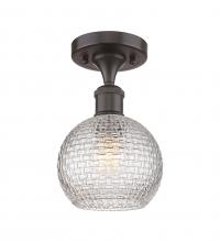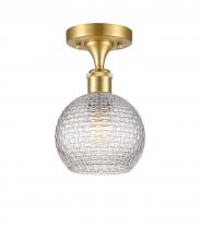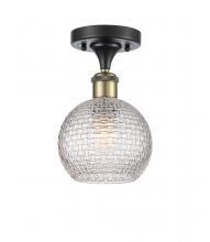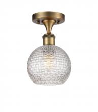 Athens - 1 Light - 6 inch - Antique Brass - Clear Basket Weave Shade - Semi-Flush Mount