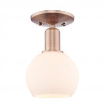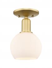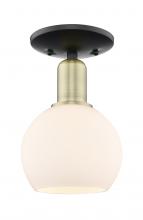 Athens - 1 Light - 6 inch - Antique Brass - Matte White shade - Semi-Flush Mount