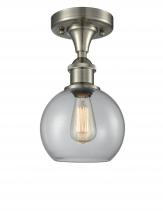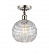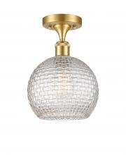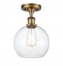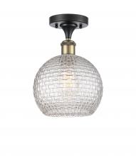 Athens - 1 Light - 8 inch - Antique Brass - Clear Basket Weave Shade - Semi-Flush Mount