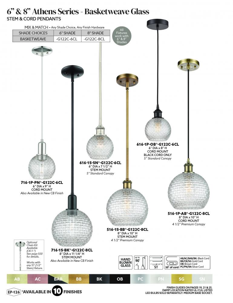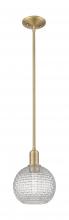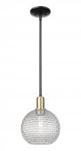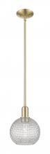 Athens - 1 Light - 8 inch - Antique Brass - Clear Basket Weave shade - Stem hung - Mini Pendant