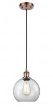 Athens - 1 Light - 8 inch - Oil Rubbed Bronze - Clear Shade - Cord hung - Mini Pendant