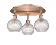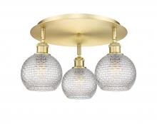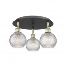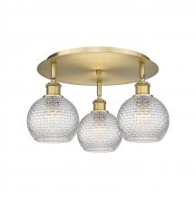 Athens - 3 Light - 18 inch - Antique Brass - Clear Basket Weave Shade - Semi-Flush Mount