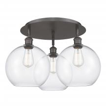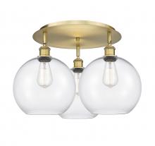 Athens - 3 Light - 22 inch - Antique Brass - Clear Shade - Semi-Flush Mount