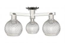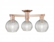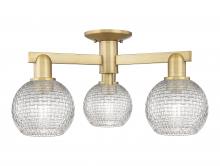 Athens - 3 Light - 23 inch - Antique Brass - Clear Basket Weave shade - Semi-Flush Mount