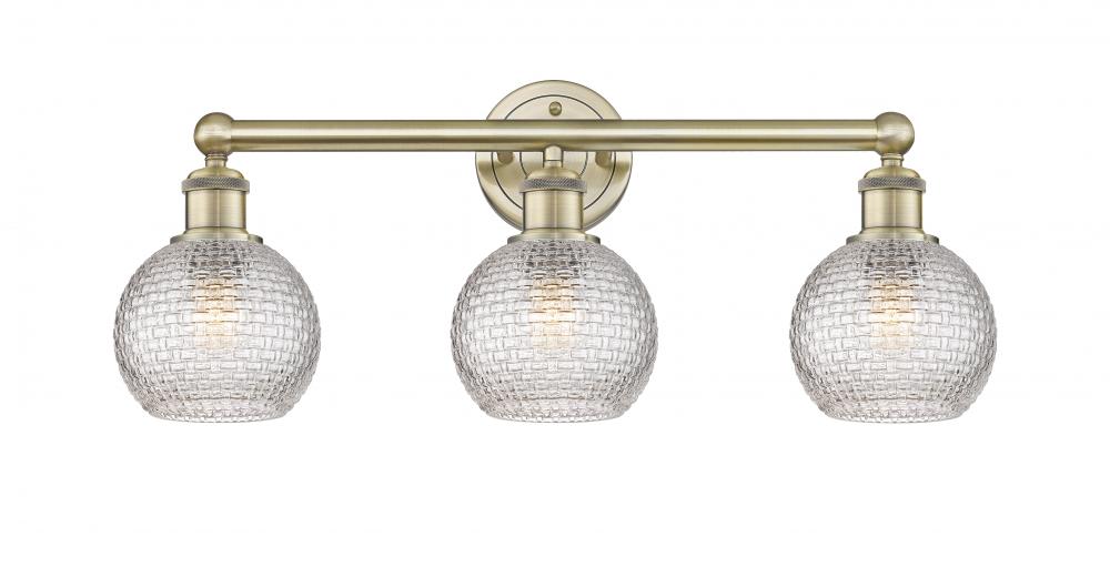 Athens - 3 Light - 24 inch - Antique Brass - Clear Basket Weave Shade - Bath Vanity Light