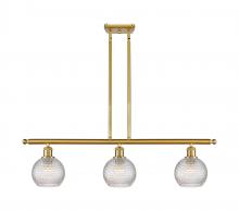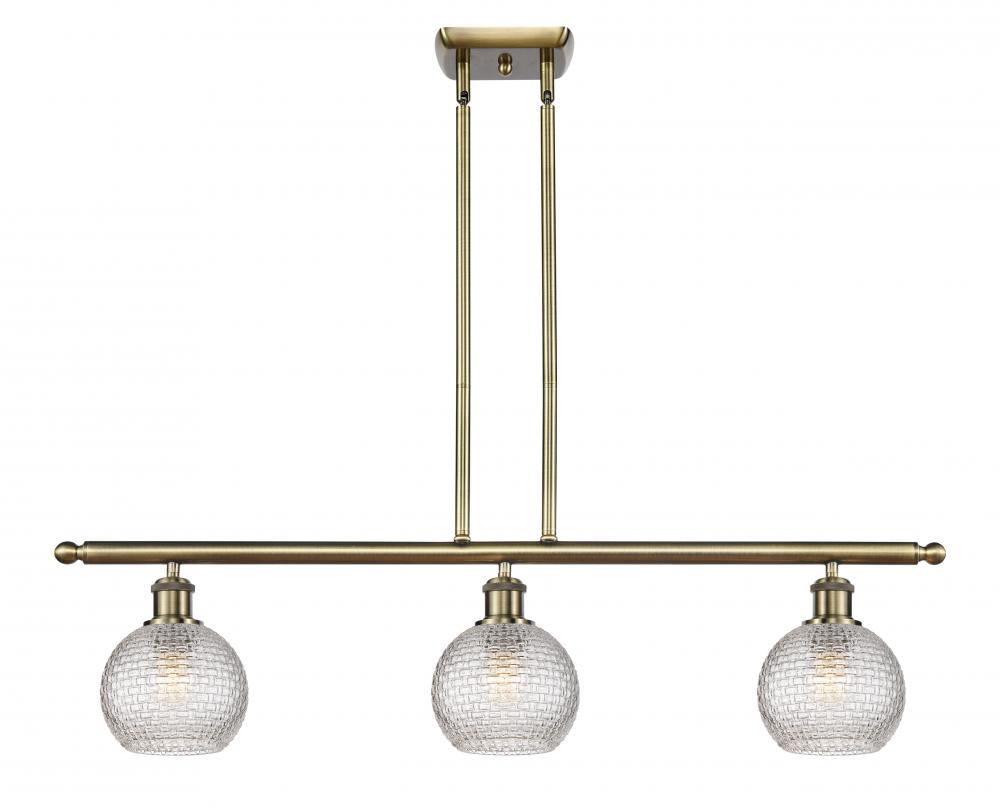 Athens - 3 Light - 36 inch - Antique Brass - Clear Basket Weave Shade - Stem hung - Island Light