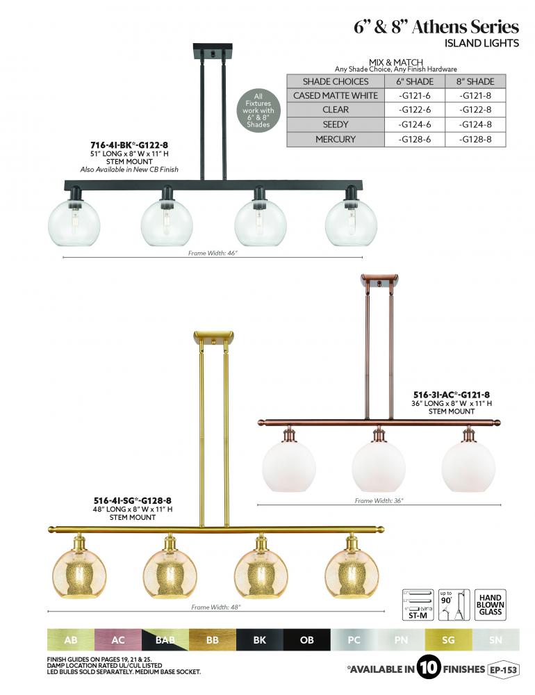 Innovations Lighting 716-4I-AB-G122C-8CL - Athens - 4 Light - 51 inch - Antique Brass - Stem hung - Island Light