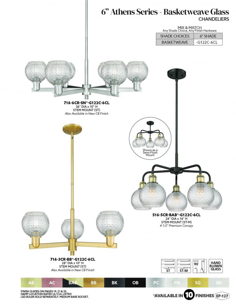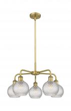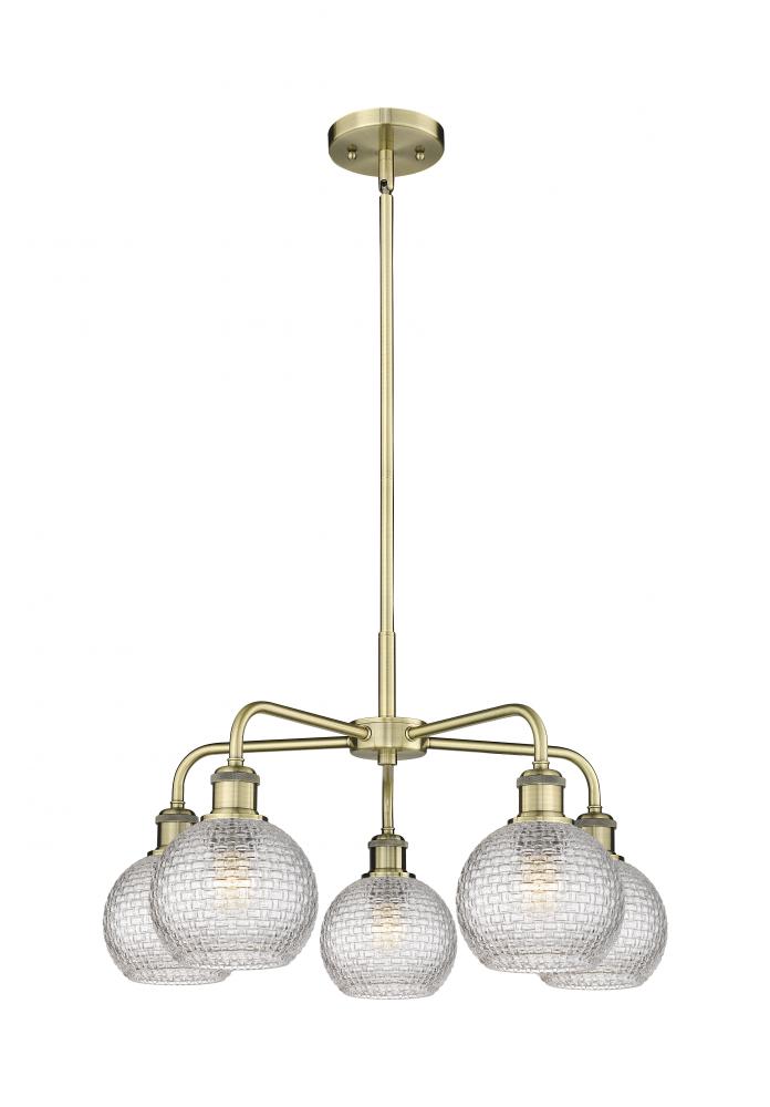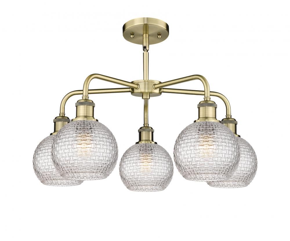 Athens - 5 Light - 24 inch - Antique Brass - Clear Basket Weave Shade - Chandelier