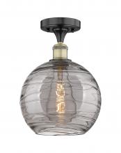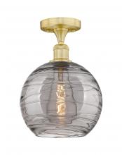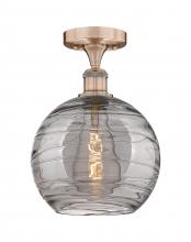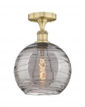 Athens Deco Swirl - 1 Light - 10 inch - Antique Brass - Light Smoke Deco Swirl Shade - Semi-Flush Mount