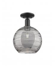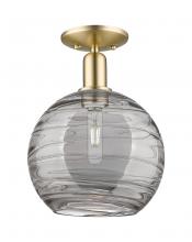 Athens Deco Swirl - 1 Light - 10 inch - Antique Brass - Light Smoke Deco Swirl shade - Semi-Flush Mount