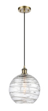 Athens Deco Swirl - 1 Light - 12 inch - Antique Brass - Cord hung - Mini Pendant