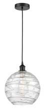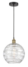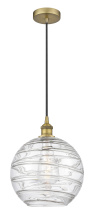 Athens Deco Swirl - 1 Light - 12 inch - Antique Brass - Clear Deco Swirl Shade - Cord hung - Mini Pendant