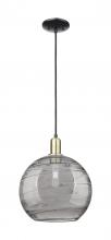 Athens Deco Swirl - 1 Light - 12 inch - Antique Brass - Clear Deco Swirl shade - Cord hung - Mini Pendant
