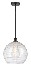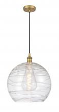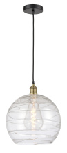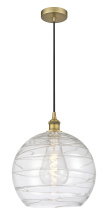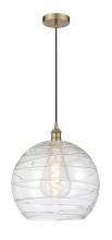Athens Deco Swirl - 1 Light - 14 inch - Antique Brass - Clear Deco Swirl shade - Cord hung - Mini Pendant