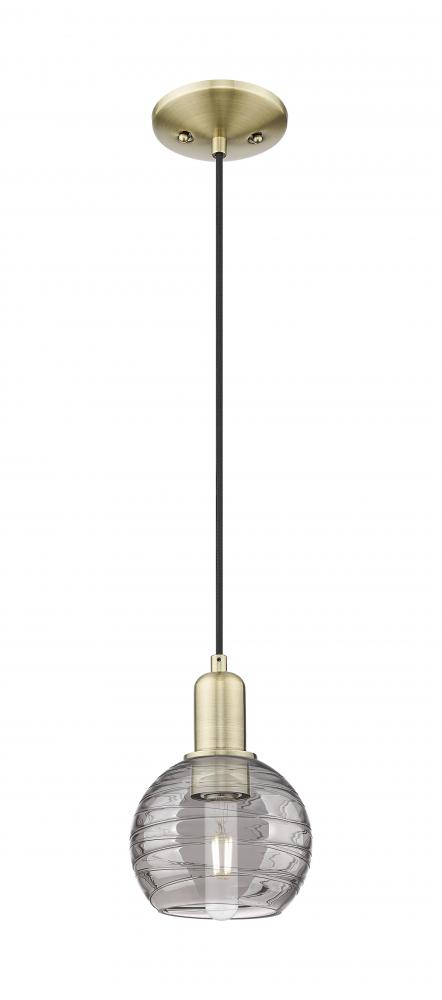 Athens Deco Swirl - 1 Light - 6 inch - Antique Brass - Cord hung - Mini Pendant