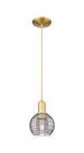 Athens Deco Swirl - 1 Light - 6 inch - Antique Brass - Light Smoke Deco Swirl Shade - Cord hung - Mini Pendant