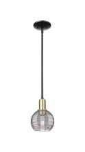 Athens Deco Swirl - 1 Light - 6 inch - Antique Brass - Light Smoke Deco Swirl Shade - Mini Pendant