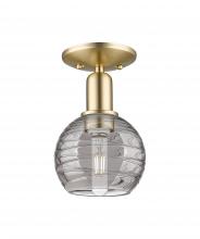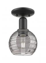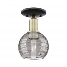 Athens Deco Swirl - 1 Light - 6 inch - Antique Brass - Light Smoke Deco Swirl Shade - Semi-Flush Mount
