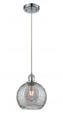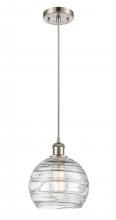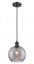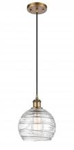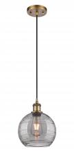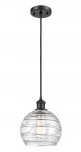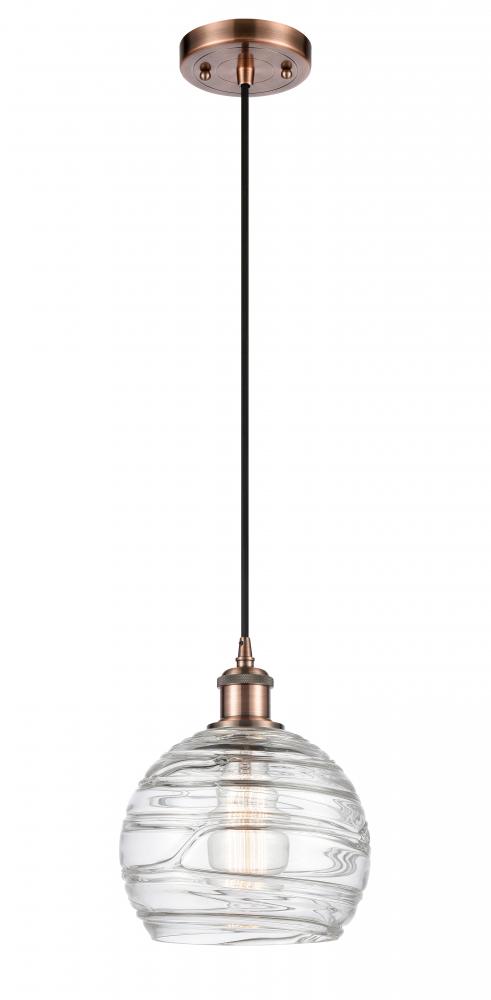 Athens Deco Swirl - 1 Light - 8 inch - Antique Copper - Clear Deco Swirl Shade - Cord hung - Mini Pendant