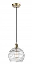 Athens Deco Swirl - 1 Light - 12 inch - Antique Brass - Cord hung - Mini Pendant