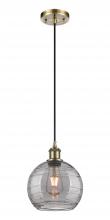 Innovations Lighting 616-1P-AB-G1213-12-LED - Athens Deco Swirl - 1 Light - 12 inch - Antique Brass - Cord hung - Mini Pendant