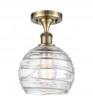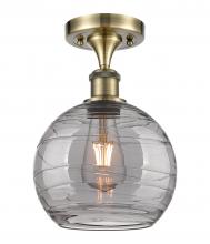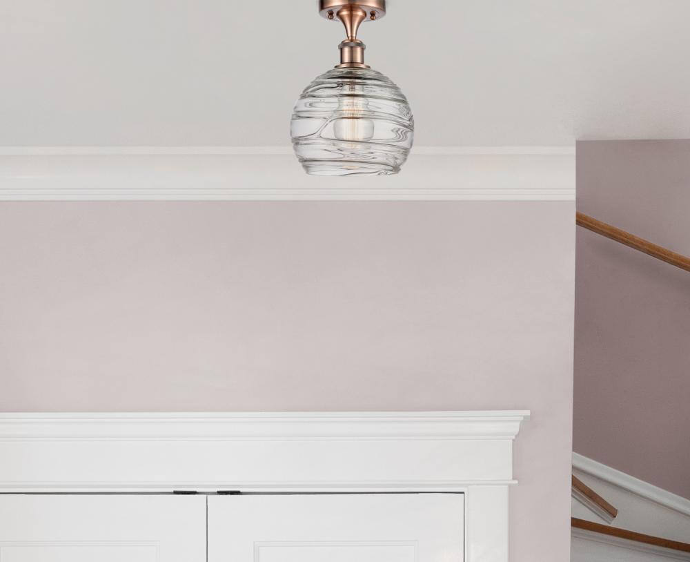 Athens Deco Swirl - 1 Light - 8 inch - Antique Copper - Clear Deco Swirl Shade - Semi-Flush Mount