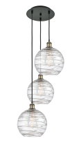 Athens Deco Swirl - 3 Light - 17 inch - Antique Brass - Clear Deco Swirl Shade - Cord hung - Multi Pendant