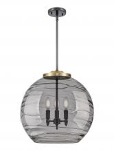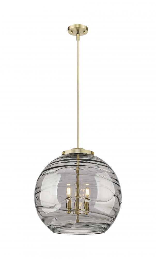 Athens Deco Swirl - 3 Light - 18 inch - Antique Brass - Light Smoke Deco Swirl Shade - Stem hung - Pendant