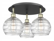 Athens Deco Swirl - 3 Light - 20 inch - Antique Brass - Clear Deco Swirl Shade - Flush Mount