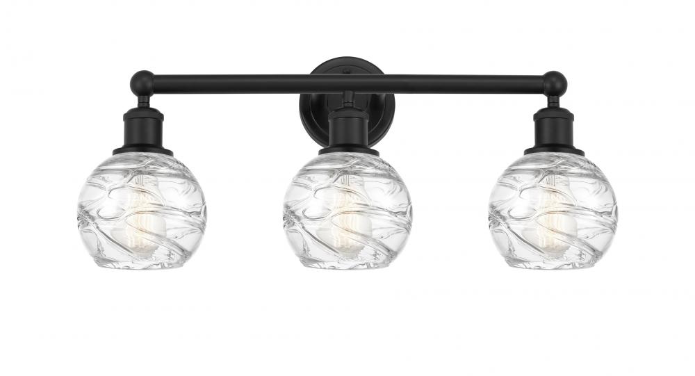 Athens Deco Swirl - 3 Light - 24 inch - Matte Black - Clear Deco Swirl Shade - Bath Vanity Light