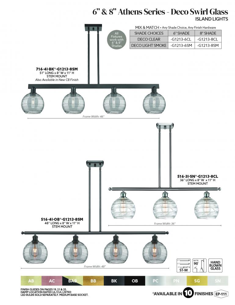 Innovations Lighting 516-4I-AC-G1213-8 - Athens Deco Swirl - 4 Light - 48 inch - Antique Copper - Stem hung - Island Light