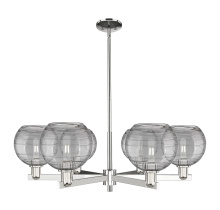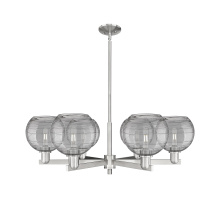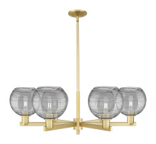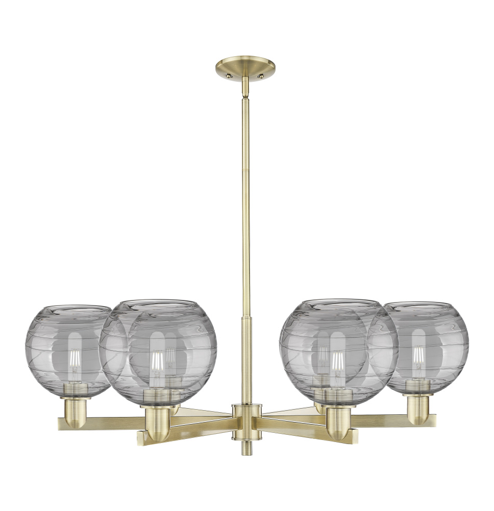 Athens Deco Swirl - 6 Light - 38 inch - Antique Brass - Light Smoke Deco Swirl shade - Stem hung - Chandelier