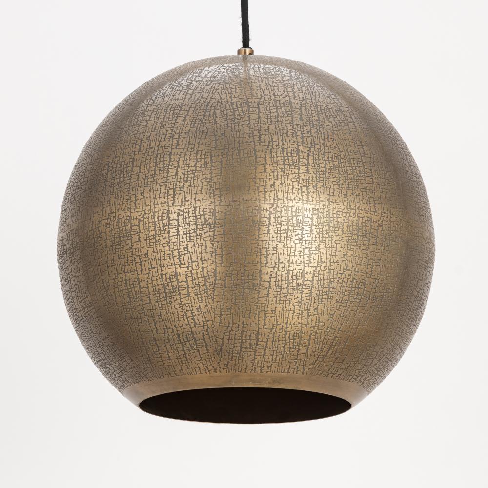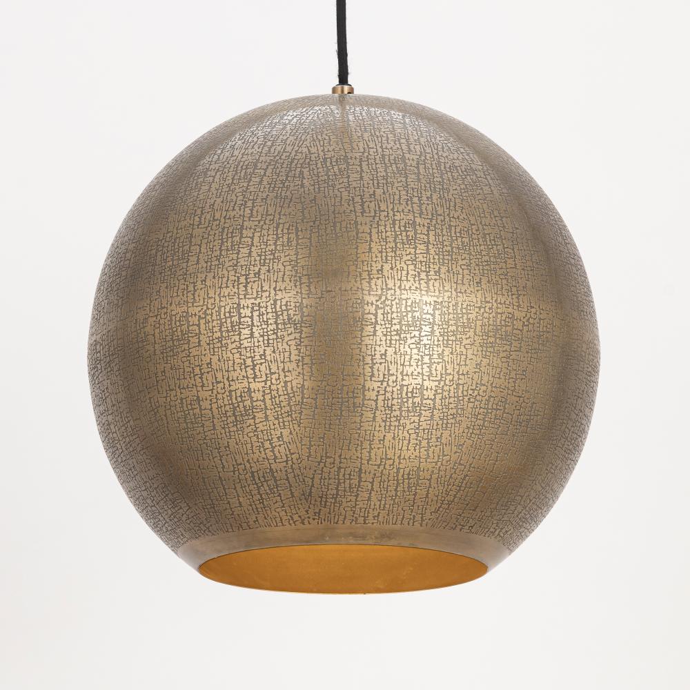 Rooted in ancient artistry and shaped for modern spaces, Aurelia is a study in timeworn opulence. Each globe pendant is formed from etched metal with a soft, tactile finish that evokes handcrafted metalwork. Finished in a warm brass tone, the shade conceal