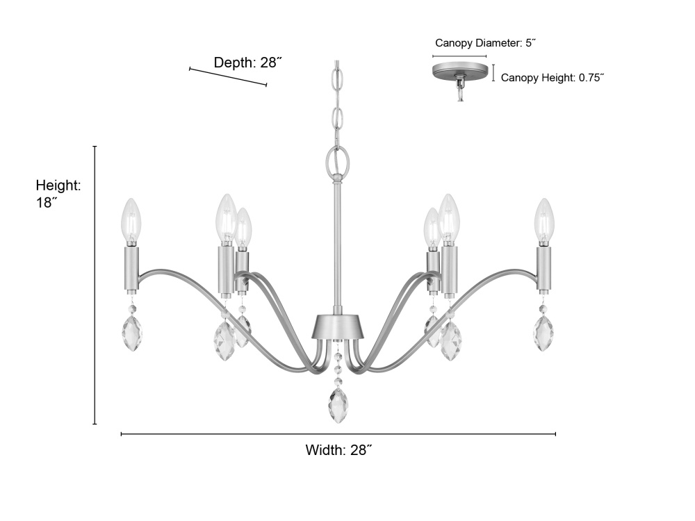 Requires (6) 60 watt max candelabra base bulbs.
