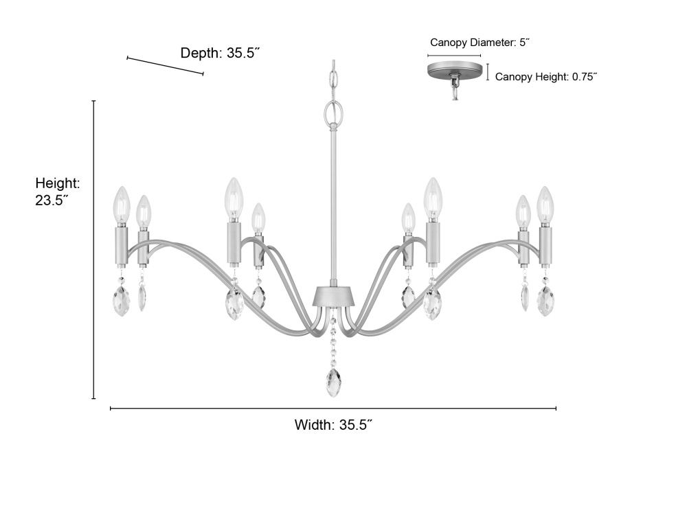 Requires (8) 60 watt max candelabra base bulbs.