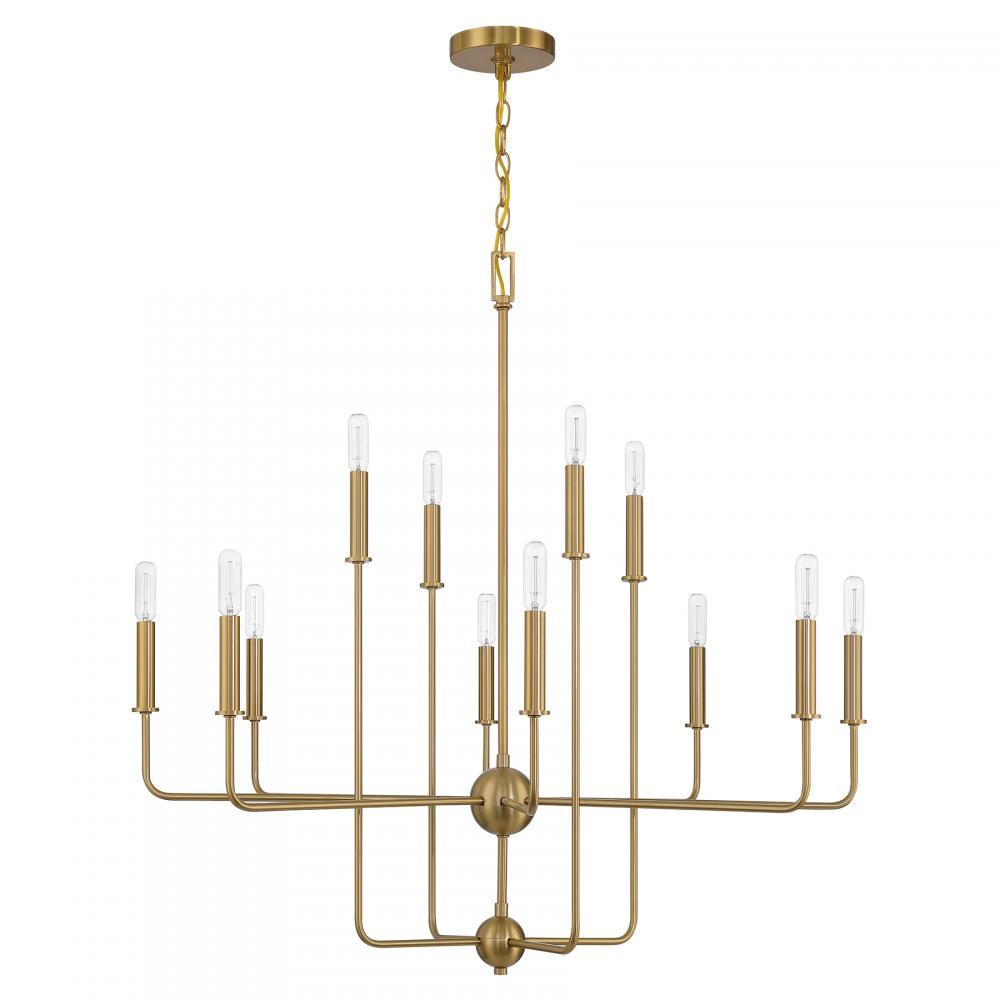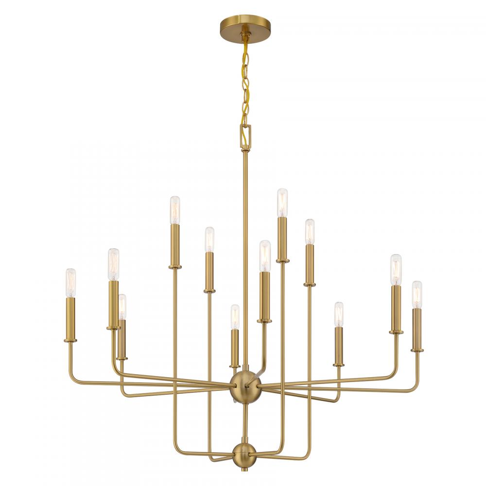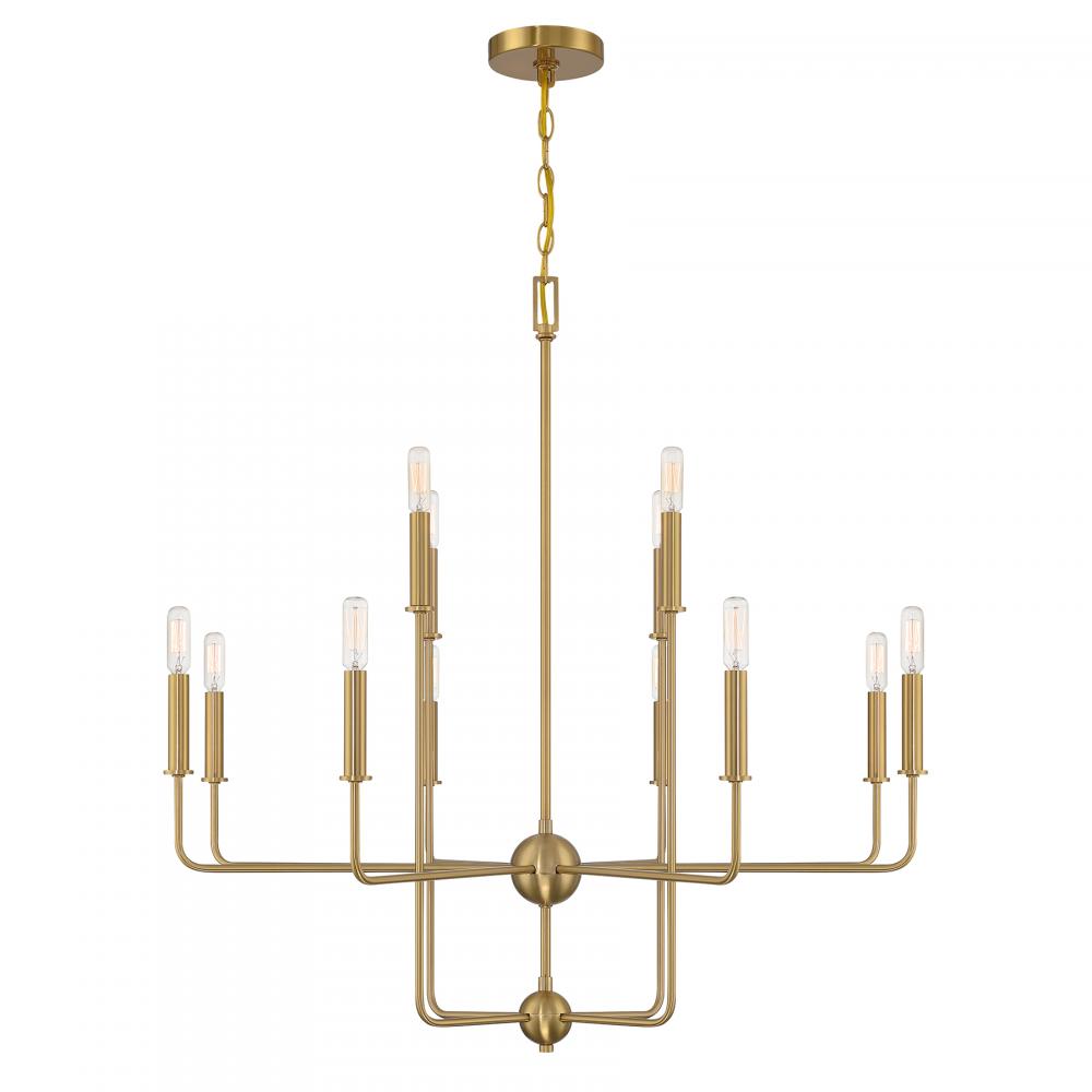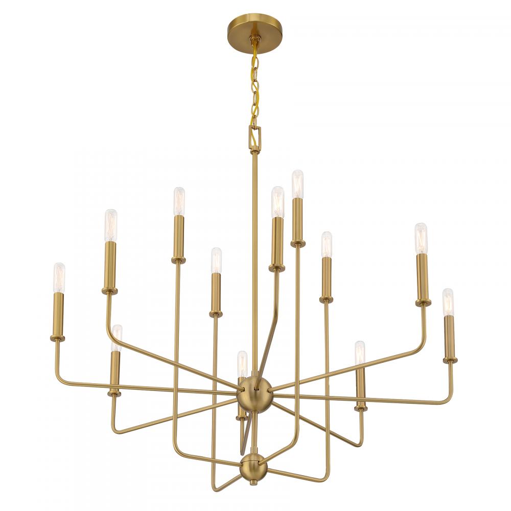Elegant in its simplicity, the Savoy House Avondale 12-light chandelier brings streamlined style to any space. Finished in Warm Brass. Avondale is 33.75" in height and 34" in width. It uses twelve candelabra size bulbs of up to 60 watts per bulb. Bulbs not included.