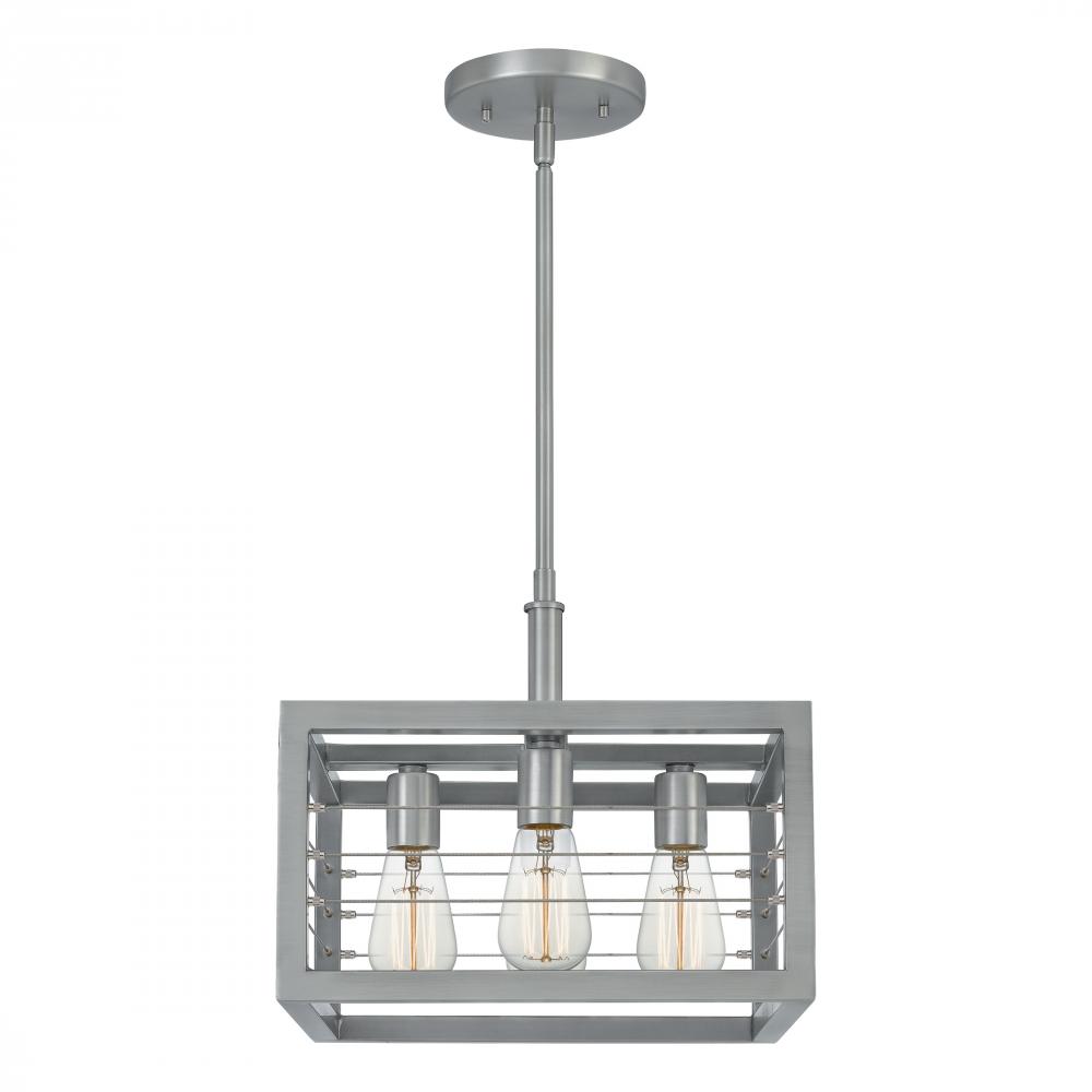 Make a statement with the transitional style of the Awendaw collection. The open, rectangular silhouette and stainless steel cable detail offers modern appeal while showcasing the light source. This collection is finished in Antique Brushed Nickel and comp
