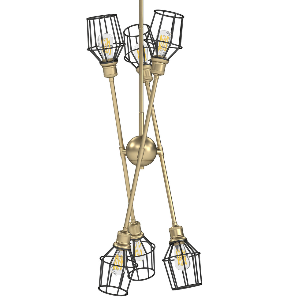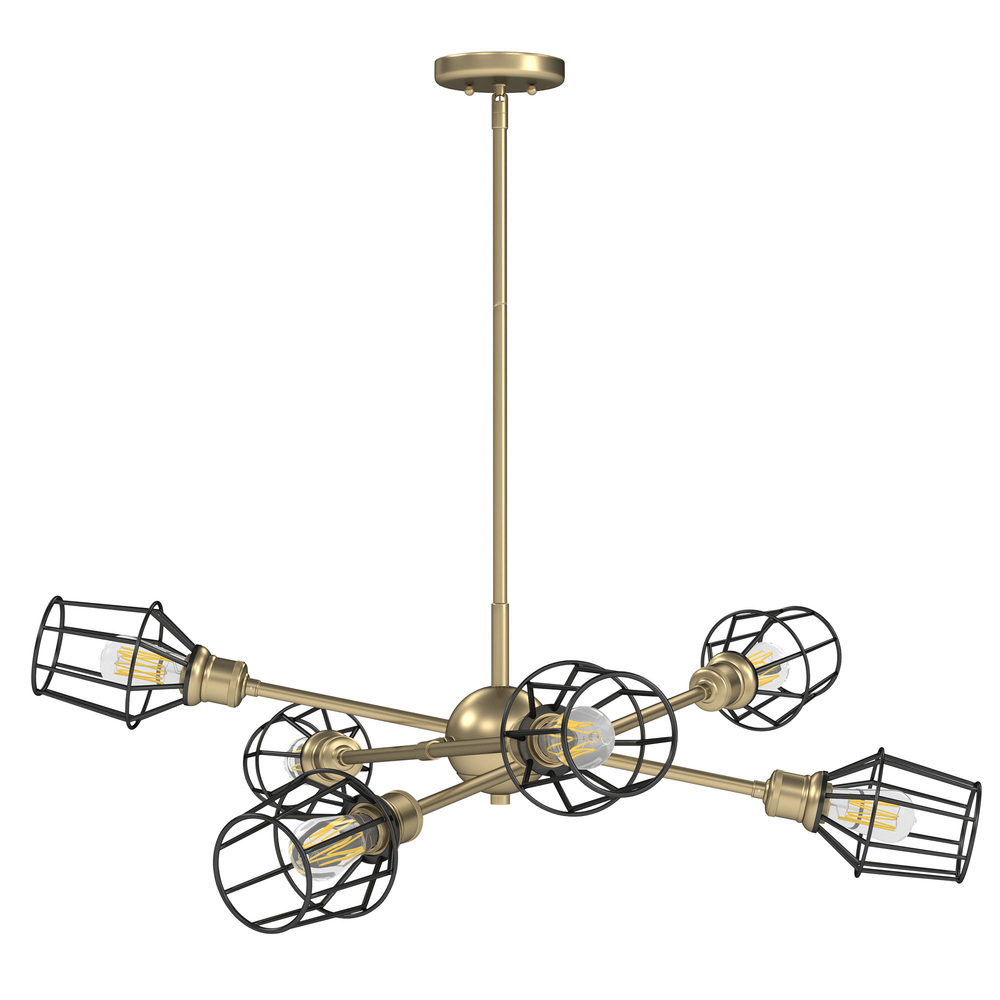 Axel 6 Light Chandelier in Olympic Gold with Matte Black Wire Shades