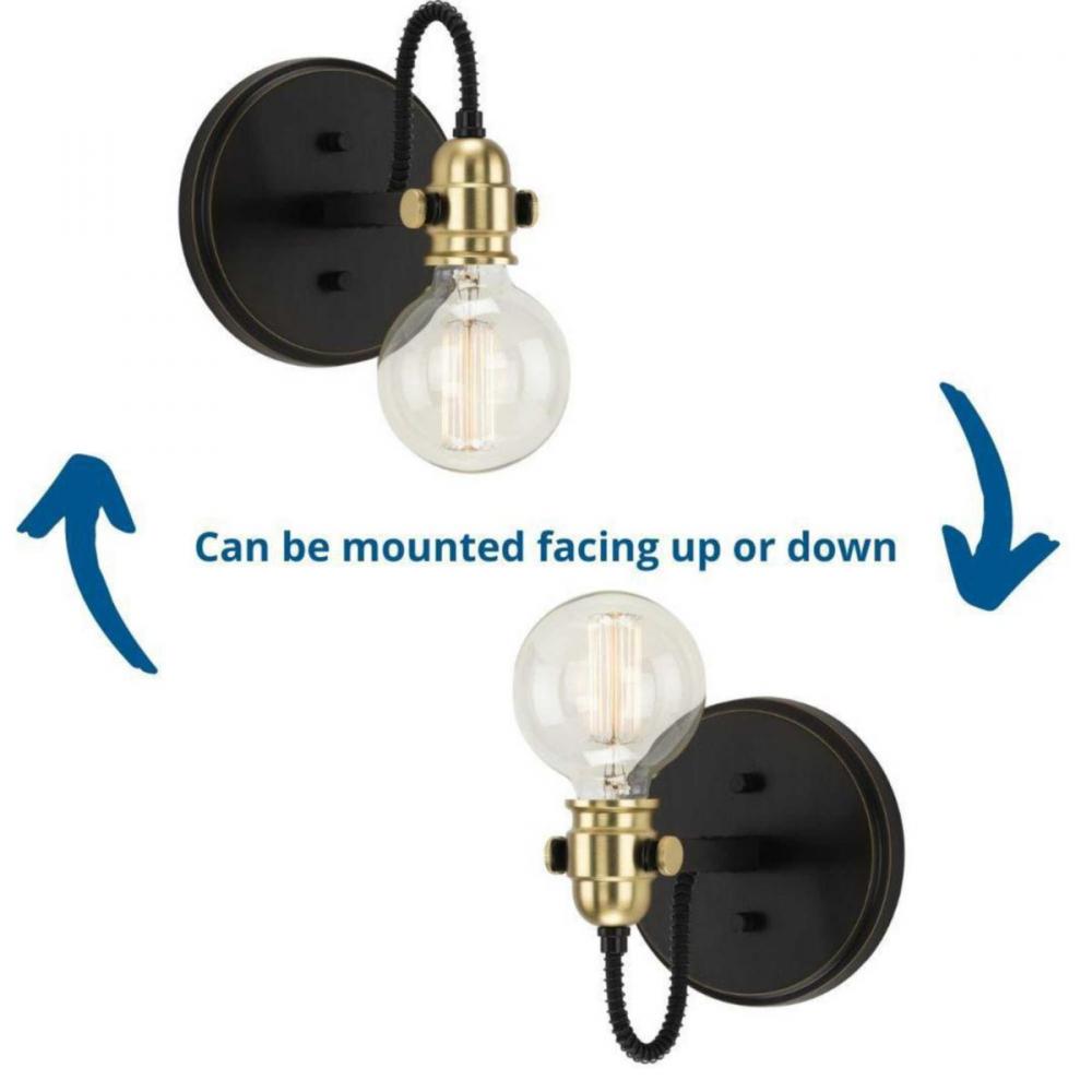 Mix old and new for charming character with the Axle Collection 1-Light Antique Bronze Vintage Bath Vanity Light. The round backplate is coated in an antique bronze finish accented by a golden satin brass vintage light base. The working gooseneck arm provides customizable tilt adjustment.