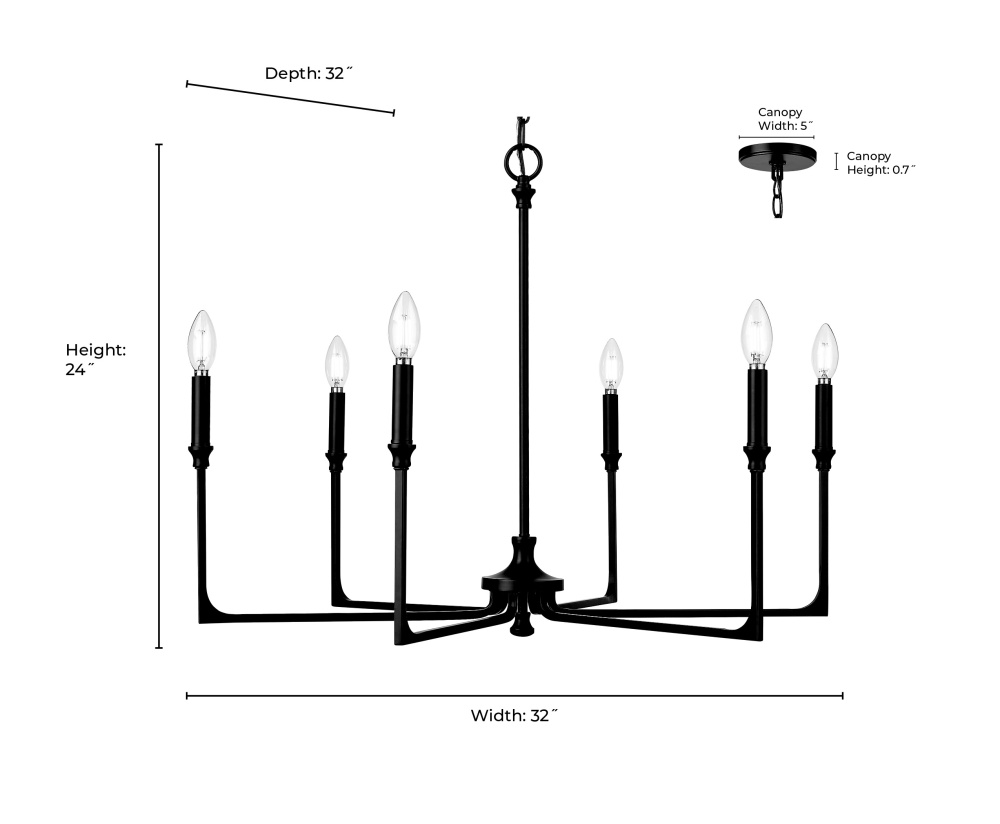 Millennium 25306-MB - Azara 32" Wide 6-Light Chandelier - Matte Black