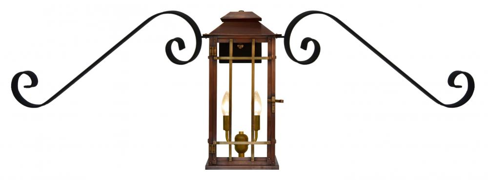 Size 18 Electric Copper Lantern, 2 candelabra base sockets, standard with Coach House Bars, with Classic Moustache
