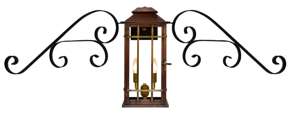 Size 22 Electric Copper Lantern, 2 candelabra base sockets, standard with Coach House Bars, with Fancy Moustache