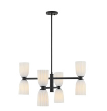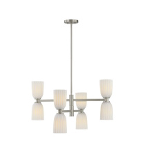 The Savoy House Baldwin 8-light chandelier invites you to reimagine your lighting style. A minimal frame finished in Noble Brass supports eight ribbed opal glass shades that radiate soft, sculptural presence. Adjustable, pivoting arms let you personalize the silhouette to suit your space. Baldwin is 30" in width and has an adjustable height ranging from 20.75" to 71.75". It uses eight standard size bulbs of up to 60 watts per bulb. Bulbs not included. Comes with eight 12" downrods and two 6" downrods.