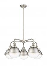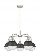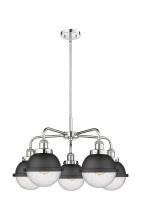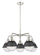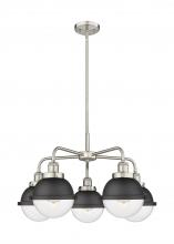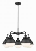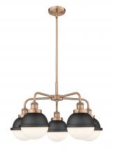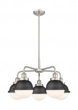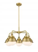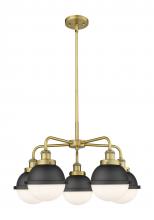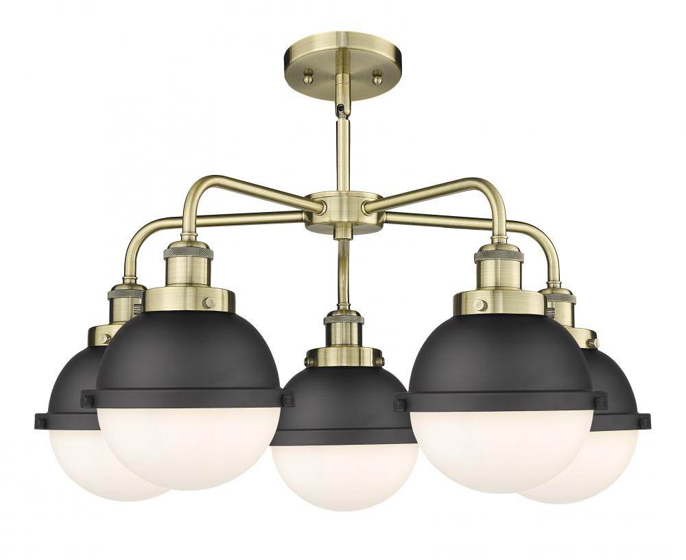 Ballston Urban - 5 Light - 26 inch - Antique Brass - Matte Black Hampden 6" with Matte White glass Shade - Chandelier