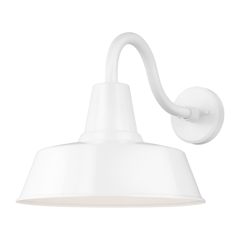 The Barn Light one light outdoor wall fixture in white is an ENERGY STAR® qualified lighting fixture that uses LED bulbs to save you both time and money. The classic Barn Lights are hand crafted in aluminum and coated in a Galvanized or Blacksmith finish. Ideal for large or heavily trafficked outdoor areas that need plenty of downward directed light. The oversized Barn Lights make great accents to any commercial lighting plan or residential garage entry, shed, or patio. To customize your look, a 6" extender is included with every fixture. Also available as Dark Sky with four size options to choose from.