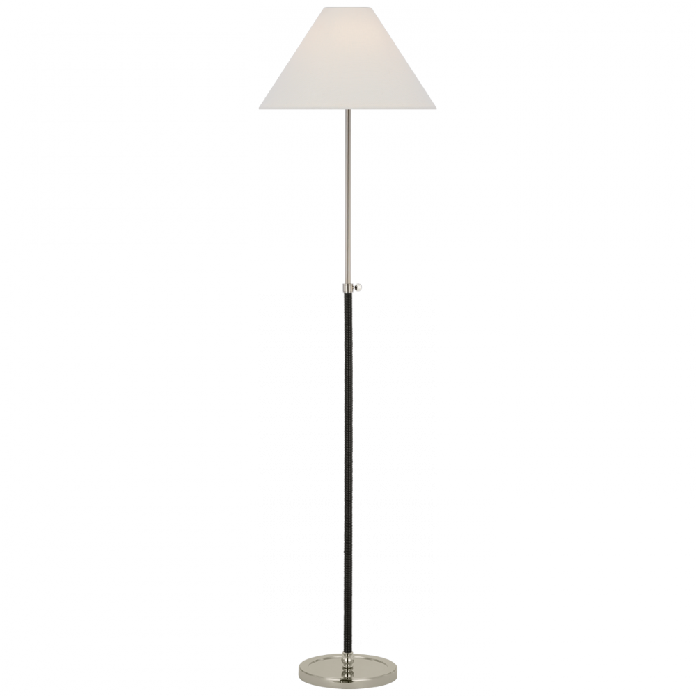 Basden 57" Adjustable Floor Lamp in Polished Nickel and Black Rattan with Linen Shade