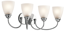 Enjoy the splendor of this Olde Bronze 4 light LED bath light from the refreshing Jolie Collection. The clean lines are beautifully accented by satin etched glass. Jolie is the perfect transitional style for a variety of homes.